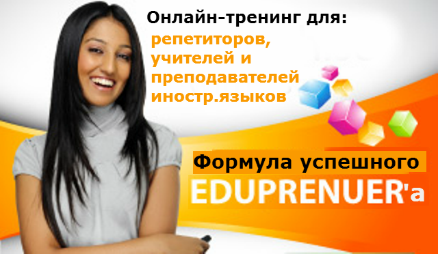 В рамках обучающего проекта «Скайп-гуру: пошаговая система по созданию собственной языковой онлайн-школы» с 29 по 31 октября 2012 г. будет проводиться 3-х дневный онлайн-тренинг «Формула успешного Edupreneur’а».
