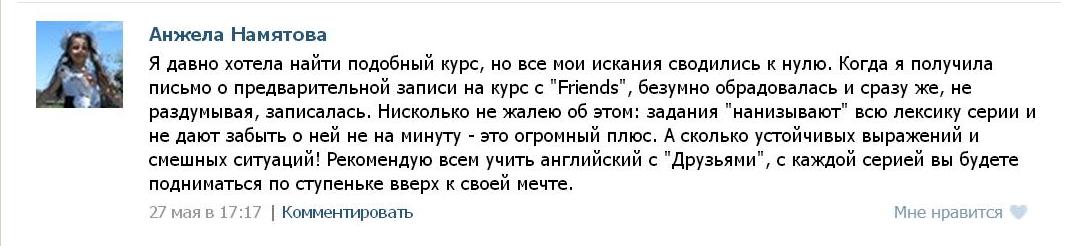 Вам необходимо будет просматривать сериал «Друзья» на английском языке. После просмотра очередной серии «Друзей» вам нужно выполнить работу, которая будет выслана Вам по электронной почте. Работа представляет собой: